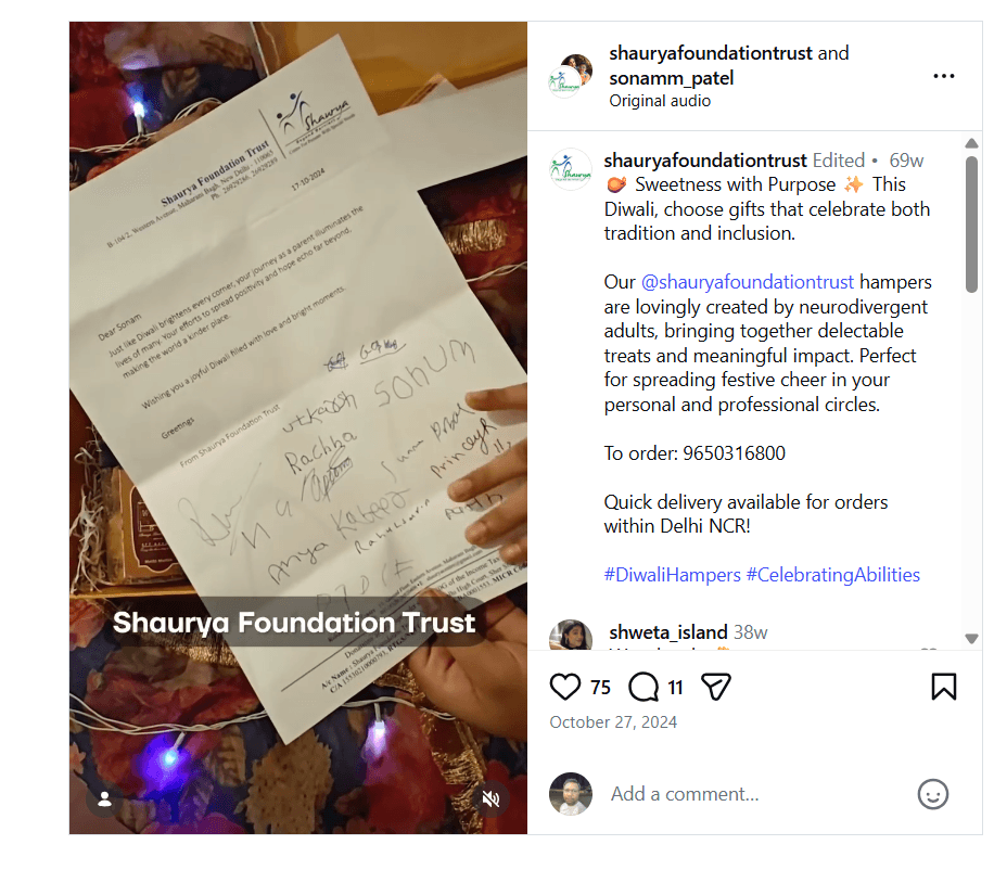 More importantly, the children’s work reached homes across India, carrying not just sweets and gifts, but a story of resilience and inclusion.